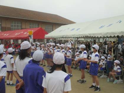解団式で6年生からの話が終わった後 「ちょっと待ったー!」 5年生から、6年生に向けてエールを送りました。