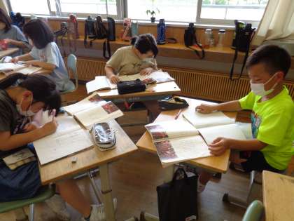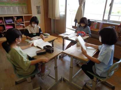 国語の説明文「アップとルーズ」では、グループで話し合いながらアップとルーズの良さなどをまとめました。どの班も協力しながら取り組んでいました。