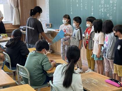 運動会まで団を引っ張ってくれた6年生に、手紙を書いて渡しました。6年生教室に入ると、緊張してなかなかうまく話せない子もいましたが、これも一つの経験です。