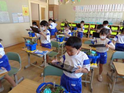 1年竹組 写真を撮ったよ 公開日 2022/05/30 更新日 2022/05/30 1年生 朝顔の双葉や本葉が出てきました。今回は、自分のクロムブックにアサガオの様子を写真に撮りました。この後、観察したり撮影したりして成長を記録していきたいと思っています。