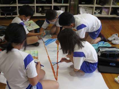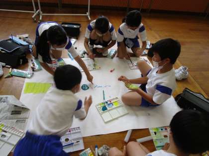 3年生 ありがとうの花の木 その1 公開日 2022/06/01 更新日 2022/06/01 3年生 お友達へのありがとうの気持ちを書いた花を貼る木を、色団に分かれて作りました。水彩絵の具を使って、きれいな色合いに仕上がりました。