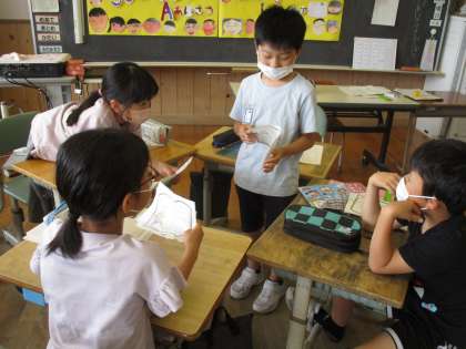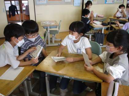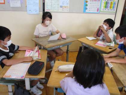 3年生 国語 おすすめの本を紹介しよう 公開日 2022/06/02 更新日 2022/06/02 3年生 班のみんなと、おすすめの本を紹介し合いました。読んだことのない本がたくさんあって、興味津々で友達の話を聞いていました。