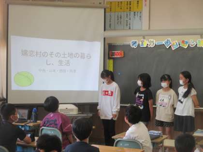 今日は、グループごとに調べていたことを発表しました。
