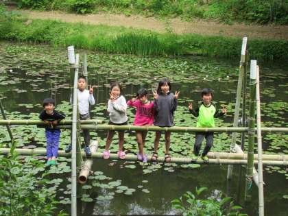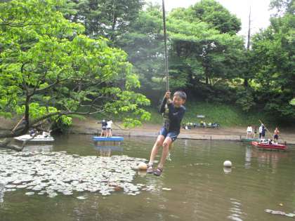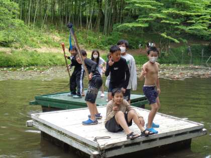4年生 宿泊学習 その2 公開日 2022/06/02 更新日 2022/06/02 4年生 午後からは、池遊びをしました。いかだ遊び、池ジャングル、ターザンロープの3つを体験し、池に落ちたり、筏を自分で漕いだりと、とても楽しい笑顔が見られました。