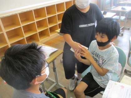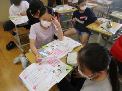 自分の宝物は何か、英語で表現しました。 友達の宝物を聞き合い、いろいろな表現を楽しんでいました。