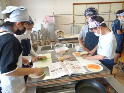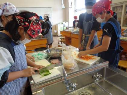 協力して材料を用意したり、切ったりします。