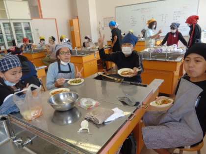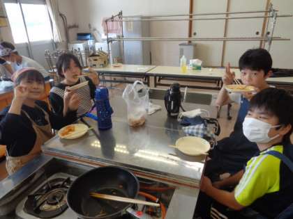 みんなで協力してつくった野菜炒め。おいしくできました。