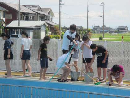 5年生 プール清掃2 公開日 2022/06/10 更新日 2022/06/10 5年生 少しの時間ですが、プールの中の掃除も体験しました。 びしょびしょになった子もいましたが、「みんなが気持ちよくプールを楽しめるように」という思いで一生懸命働くことができました。