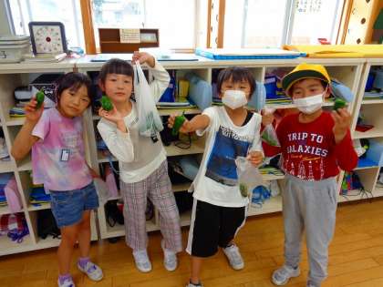 2年生 ピーマンを収穫したよ 公開日 2022/06/10 更新日 2022/06/10 2年生 毎日、大切に育てている野菜の実が大きくなりました。 「このままかじりたい」と話す子もいました。これからたくさんの野菜を収穫するのが楽しみです。