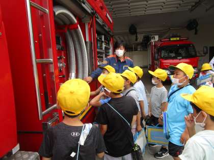 3年生 校外学習 八尾消防署 その2 公開日 2022/06/17 更新日 2022/06/17 3年生 消防署の中を見せていただいた後、放水体験もさせてもらいました。消防署の仕事の大切さや大変さを感じ取っていました。