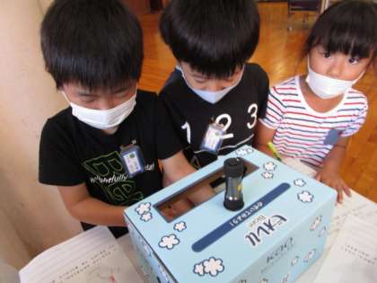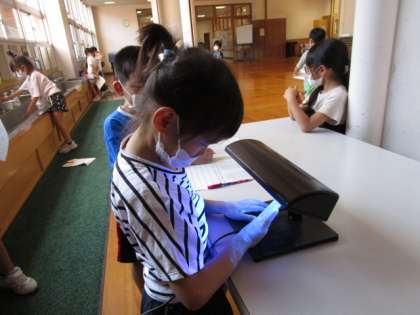 どうしたら、自分がきれいに手を洗うことができるのか、手洗いチェッカーを用いて学習しました。