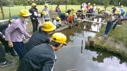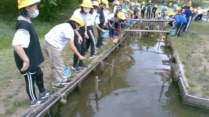 6年宿泊学習 ザリガニ釣り 公開日 2022/06/24 更新日 2022/06/24 6年生 宿泊学習最後の活動、ザリガニ釣りです。 釣り竿でザリガニを釣る人、バケツで受け取る人と、分担しながら楽しんでいます。