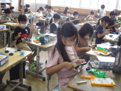 「風やゴムの働き」の学習が始まり、ワクワクしながら必要な部品を組み立てていました。
