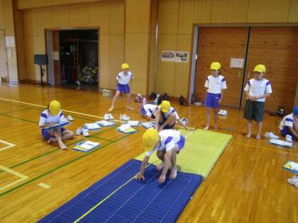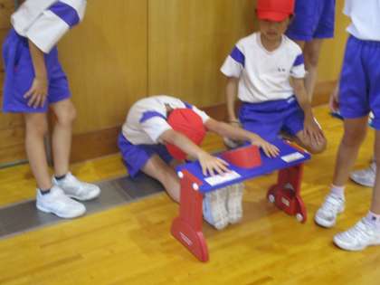 今日は、立ち幅跳びと長座体前屈を行いました。色団で協力して、記録を確かめ合っていました。