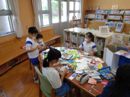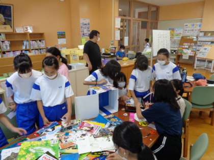 図書・掲示委員会の企画で自分だけのオリジナルしおりを作りました。自分の好きなシールやイラストを楽しそうに貼っていました。完成したオリジナルしおりを使うのを心待ちにしています。
