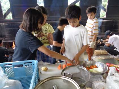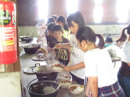 5年生 宿泊学習4 野外炊飯2 公開日 2022/07/07 更新日 2022/07/07 5年生 かまどを扱うのは初体験の子がほとんどでしたが、どの班もばっちり火をつけることができました。 どきどきしながら真剣に鉄鍋を見つめ、ふたを開けてぴかぴかのご飯が見えたときには思わず歓声があがりました。 わくわくしながら盛りつけました。