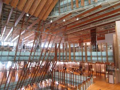校外学習に行きました。木材をふんだんに使った内装や、アルミを使った外装を見て、富山の特徴を生かした建造物のよさを感じているようでした。また、美しい作品やたくさんの本に心を動かされる人もいました。