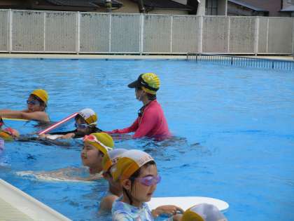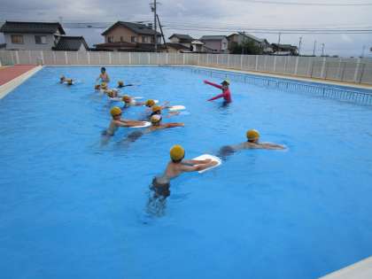 本日、B&Gのコーチの方が来校され水泳教室が開かれました。ラッコチームでは、けのびやバタ足で進んだり、クロールの手の動きができるようになったりと、すごく上達しました。