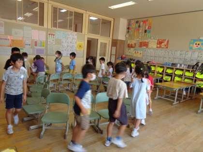 子供たちとプログラムの内容を考えて、お楽しみ会をしました。教室内でできる遊びを2つしました。「いす取りゲーム」と「フルーツバスケット」です。ルールを確かめて行いました。いきいきとした表情で楽しそうでした。