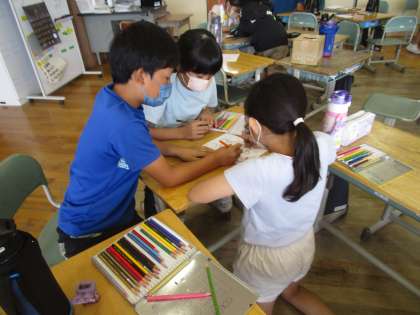 今日は子供たちが心待ちにしていたお楽しみ会を行いました。係毎の出し物は、内容が盛り沢山でした。工作係は、制限時間内に班で協力して塗り絵をして、上手な作品と面白い作品を選出するという内容で、同じイラストなのに色々な塗り方があって楽しんでいました。