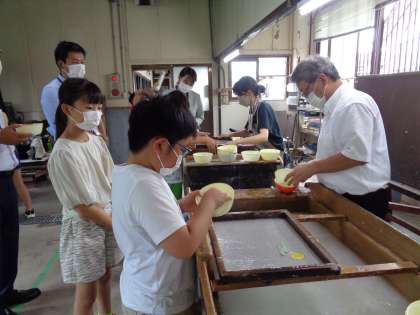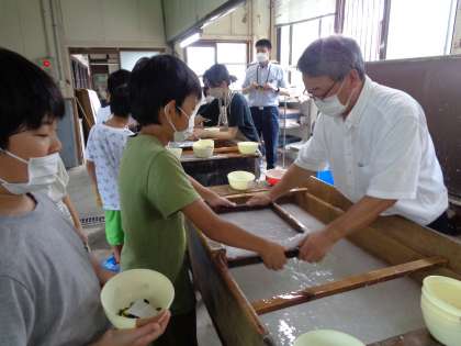 午後からは、和紙文庫・桂樹舎へ行き、紙すきをし、好きな切り絵をのせ、オリジナル和紙を作りました。貴重な体験をたくさんしました。