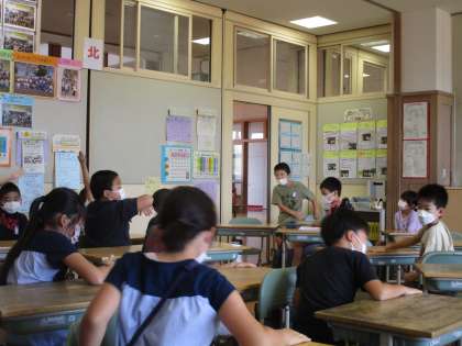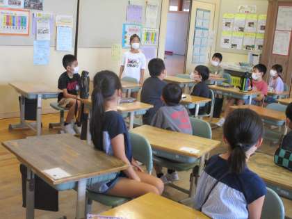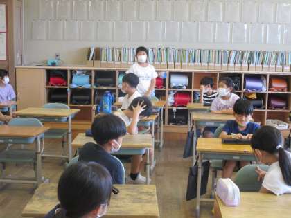3年生 夏休みの思い出 公開日 2022/08/30 更新日 2022/08/30 3年生 宿題を提出した後に、夏休みの思い出を伝え合いました。「えー!」「そうなの?!」「一緒だ」などと反応しながら、心を繋げて聞いていました。明日から始まる2学期の学習も楽しみです。
