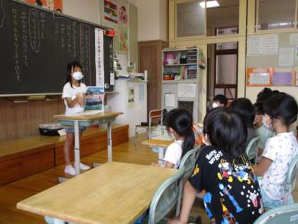1年松組 ききたいな、ともだちのはなし 公開日 2022/08/31 更新日 2022/08/31 1年生 国語科の学習で、夏休みに一番頑張ったことについて発表しています。一人一人の発表に、温かい拍手を送っていました。