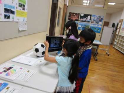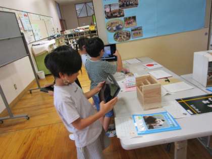 他の学年の作品を見て回っています。どの学年も素敵な作品ばかりで驚いていました。