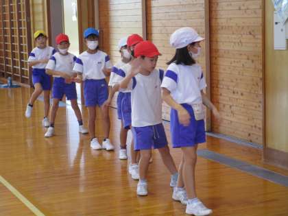 新しくできた「おわら係」が、体育の時間の「リズムダンス」のウォーミングアップに、おわらの踊りを教えてくれました。