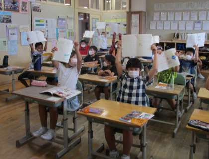 昨日の社会の時間に出された課題を、やっていた人がたくさんいました。おうちにあった、値札や割引のシールをノートに貼っている人や、おうちの人に理由などを聞いてまとめている子もいました。とてもやる気が感じられます。今後もインタビューなど、ご協力よろしくお願いします。