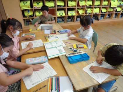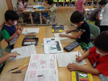 1年竹組 生活科 虫の飼い方調べ 公開日 2022/09/09 更新日 2022/09/09 1年生 先日の探検で、すすきの森に住んでいる虫がコオロギやバッタ等であると分かりました。来週には、見つけた虫を教室でお世話するので、どんなすみかが必要なのか、どんなえさがいるのかを調べました。