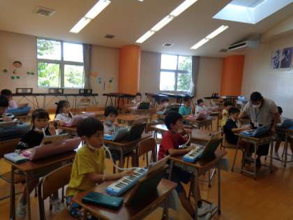 2学期から鍵盤ハーモニカの演奏をしました。「どんぐりさんのおうち」という曲を練習しました。楽しんでいます。