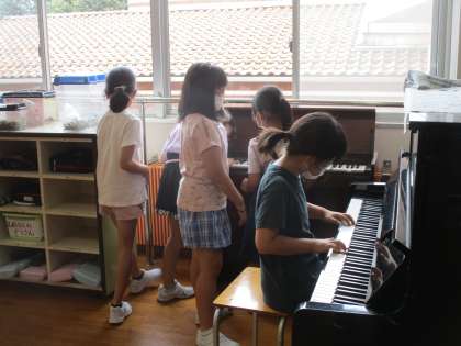 3年生 のびのびタイム 公開日 2022/09/16 更新日 2022/09/16 3年生 4年生さんが校外学習でいなかったので、普段使えないオープンスペースを使ってもいいよと伝えると、とても嬉しそうに遊んだり、ピアノを弾いたりする姿が見られました。また、色団で話合って体育の「リズムダンス」の動きを考える子供たちもいました。