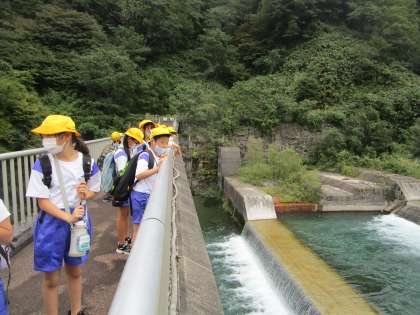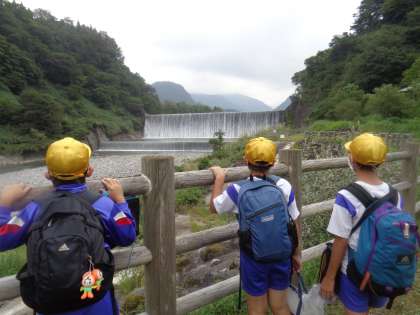 本宮砂防堰堤のそばで昼食を食べました。連絡橋を渡り、堰堤の規模の大きさを実感しました。