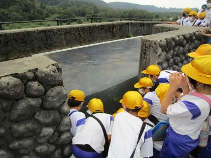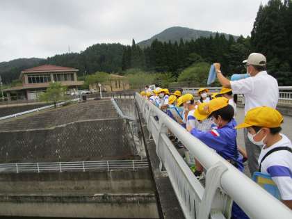 4年生 社会科校外学習4 公開日 2022/09/16 更新日 2022/09/16 4年生 横江頭首工です。大木や巨石が頭首工にとどまっている一方で、魚専用の魚道を見た子供たちは、常願寺川の恐ろしさと豊かさの両面を感じていました。