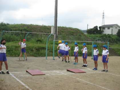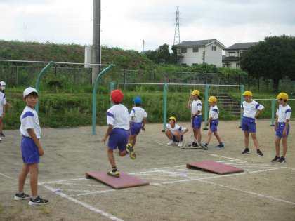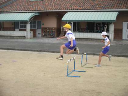 ハードル走や走り幅跳びに取り組んでいます。 徐々に上手になってきました。