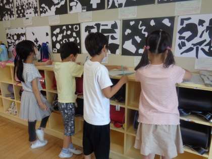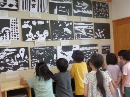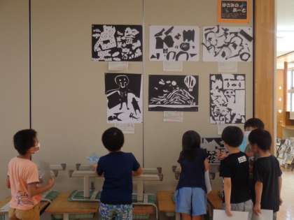 図画工作科の学習で、鑑賞をしました。友達の作品のよいところや、すてきなところ見付をしました。