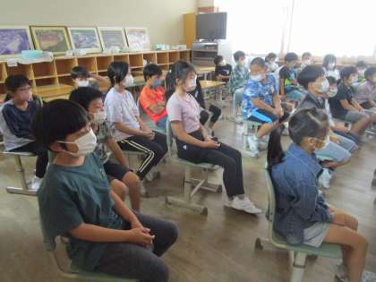 3年生 読書フェスティバル その3 公開日 2022/09/22 更新日 2022/09/22 3年生 3限は、八尾おはなしの会の方に、素話や読み聞かせをしていただきました。特に、月にミルクを取りにいったねこのお話や、ひなどりがくしゃみを我慢しすぎてくしゃみをしてしまう場面が面白かったようです。