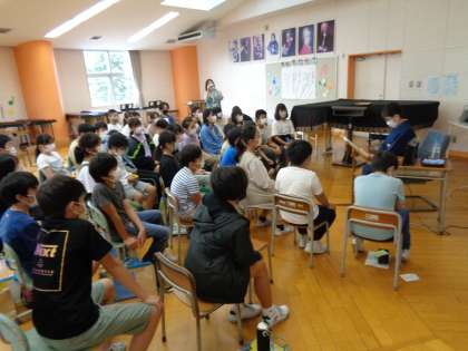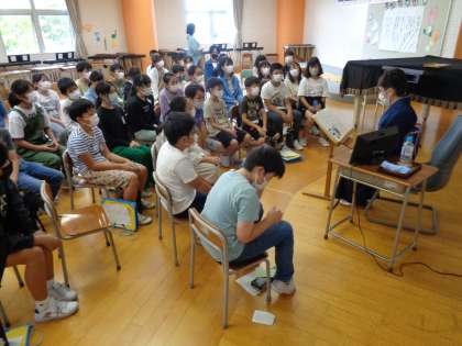 音楽も交えた、ひと味違ったお話の仕方に子供たちは集中していました。