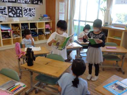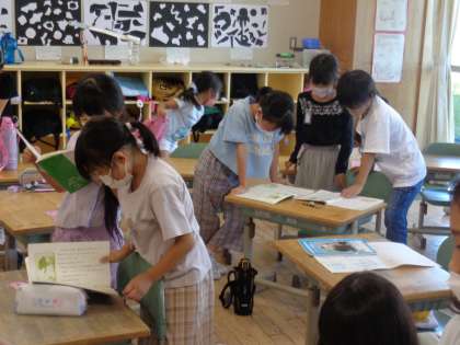 音読劇をするために、登場人物の心の声を考えて、音読の練習をしています。
