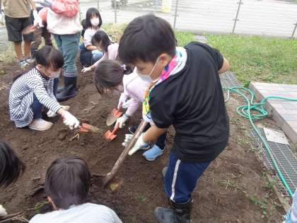 丸々と太ったサツマイモが掘り起こされ、秋の収穫を楽しみました。