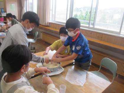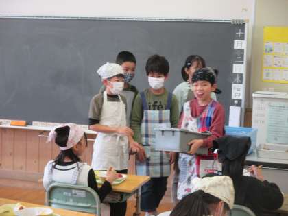 全校のみんなに1合ずつプレゼントするため、みんなで一生懸命袋に詰め、各学級にお届けしました。