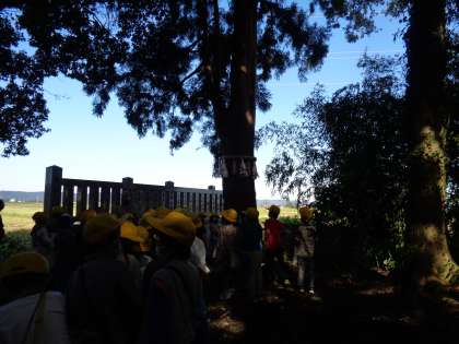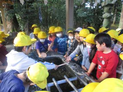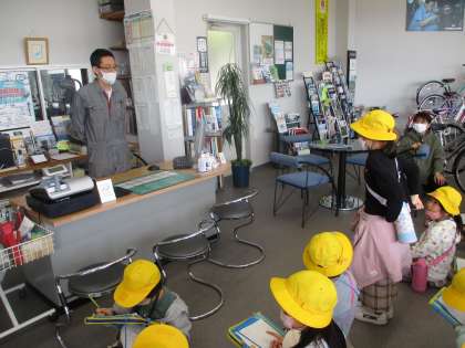 杉原神社に行き、その後、3つのグループに分かれて、竹島食品、サイクルショップ伊藤、杉原郵便局に行きました。