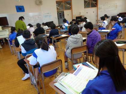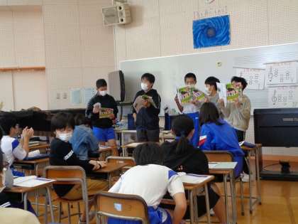 卒業式の候補曲「大切なもの」を聞いたり、「星の世界」を歌ったりしました。