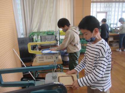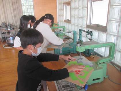 5年生 糸のこ 公開日 2022/10/25 更新日 2022/10/25 5年生 図工では、伝言板作りを行っています。 電動の糸のこを使って板を切ったり、水彩で着色したりと、自分に必要な作業を進めていました。 糸のこは思い通りに切るのが難しそうですが、夢中になって作業していました。