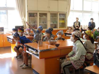 3年生 豆腐に関する実感・体験学習会 その8 公開日 2022/10/31 更新日 2022/10/31 3年生 食べた後に、感想を伝え合い、最後に代表2名が感謝の言葉を伝えました。「豆腐が苦手だったけれど、自分で作った豆腐を食べたら美味しかったので、これからも豆腐を食べたい」「豆腐を作るときに、焦がさないように煮ることがとても難しかったので、豆腐作りは大変だと思った」などの感想がありました。おうちでも、ぜひ話を聞いてみてください。