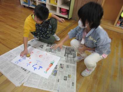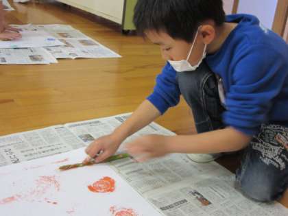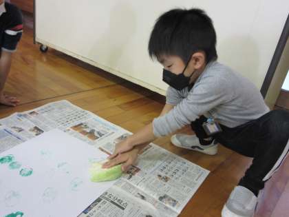 今日は、先日保健の先生からいただいた野菜を使って、スタンピングしました。