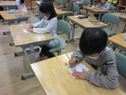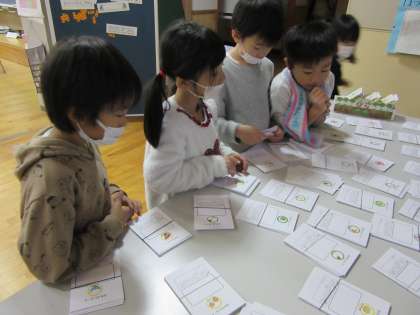 「たべものとなかよし」になるべく、毎日食べ物のカードに好きなところを書いています。