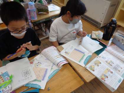 九九の学習をがんばっています。今日は、九九でビンゴをしました。