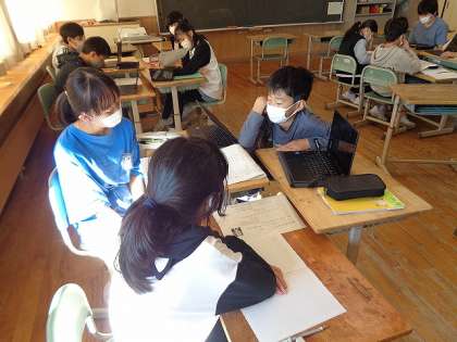 6年 織田・豊臣発表会 公開日 2022/11/07 更新日 2022/11/07 6年生 一人一人が調べた織田信長、豊臣秀吉のことをグループの中で伝え合いました。 自分の調べたことが友達に伝わるように工夫して伝えました。